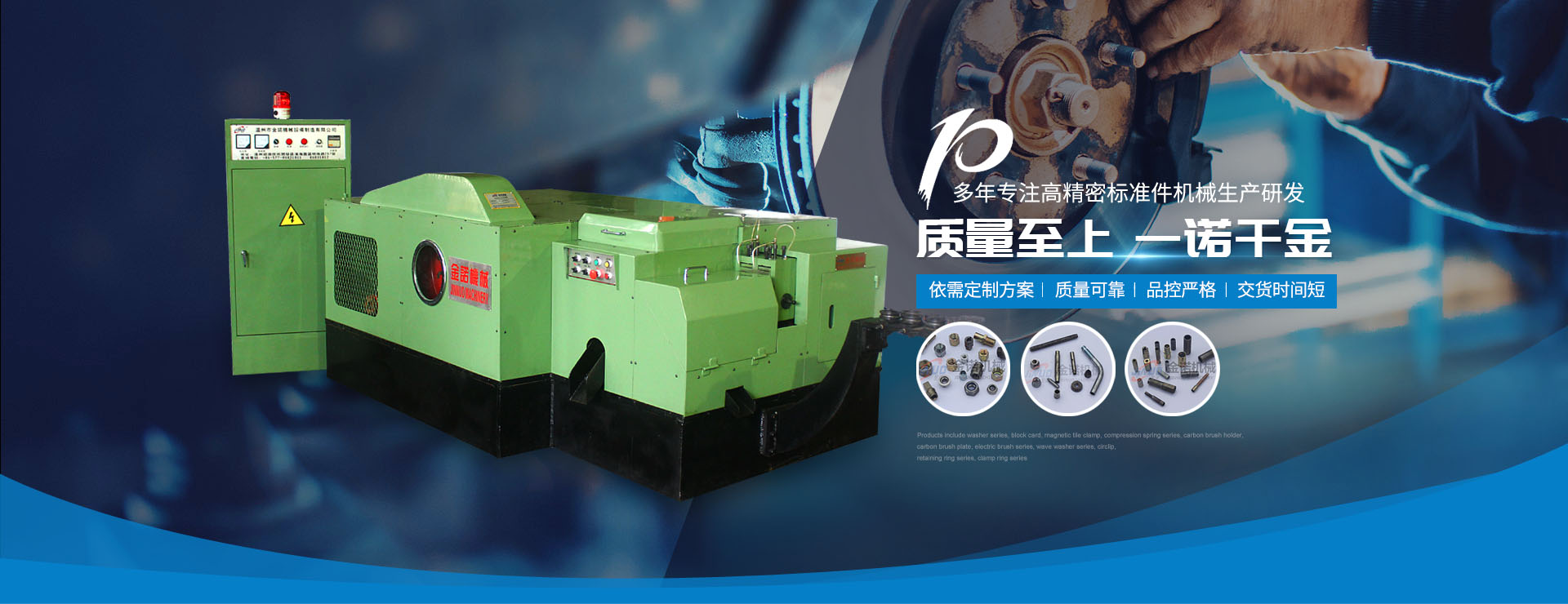 溫州市金諾機(jī)械設(shè)備制造有限公司創(chuàng)立于2003年,公司位于溫州市濱海經(jīng)濟(jì)技術(shù)開(kāi)發(fā)區(qū)。是一家專業(yè)從事研發(fā)和生產(chǎn)高精密度緊固件設(shè)備以及多工位冷擠壓零件成型設(shè)備的專業(yè)制造商。主營(yíng)產(chǎn)品有:冷鐓機(jī)、多工位冷鐓機(jī)。本公司秉承“質(zhì)量為上,一諾千金”,的企業(yè)宗旨,不斷創(chuàng)新,積聚多年冷鐓機(jī)研發(fā)制造經(jīng)驗(yàn)......